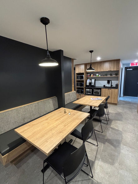 La rénovation des bureaux et de la salle de repos destinée aux employés a été pensée pour répondre aux besoins grandissants tout en reflétant la nouvelle image de l’entreprise. Nous avons également intégré une salle de conférence en porte-à-faux, permettant de créer un nouvel espace de rencontre sans empiéter sur l’aire de vente de la quincaillerie. Le design allie efficacité et modernité, insufflant un véritable vent de fraîcheur aux espaces de travail.